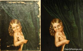 This is especially evident in paintings which have never been varnished. Cleaning and nourishing the paint surface, followed by varnishing, can restore the colors to reflect the artist's original vision.